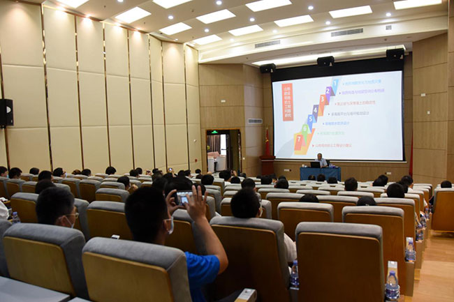 2020年4月18日上午,工勘學苑2020年第二講于工勘大廈11樓多功能會議廳開講。工勘集團戰(zhàn)略合作伙伴徐州景安重工機械制造有限公司(以下簡稱景安重工)董事長陳衛(wèi)、總經(jīng)理魏垂勇、副總經(jīng)理李景峰受邀出席了講座,并進行《全回轉(zhuǎn)鉆機及相關(guān)施工工藝》專題授課。講座由技術(shù)中心副主任童心主持,工勘集團董事長林強有、副董事長雷斌、總經(jīng)理李紅波、總工程師王賢能、副總經(jīng)理付文光、李新元等領(lǐng)導及相關(guān)部門技術(shù)人員參加。