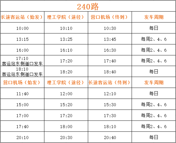 公汽公司從機(jī)場(chǎng)辦公室獲悉:從2017年8月1日起,營(yíng)口藍(lán)旗機(jī)場(chǎng)開辟“營(yíng)口—濰坊—西安”新航線。針對(duì)上述情況,為方便市民出行,經(jīng)公司研究現(xiàn)提出調(diào)整機(jī)場(chǎng)240路運(yùn)營(yíng)班次。具體內(nèi)容如下: