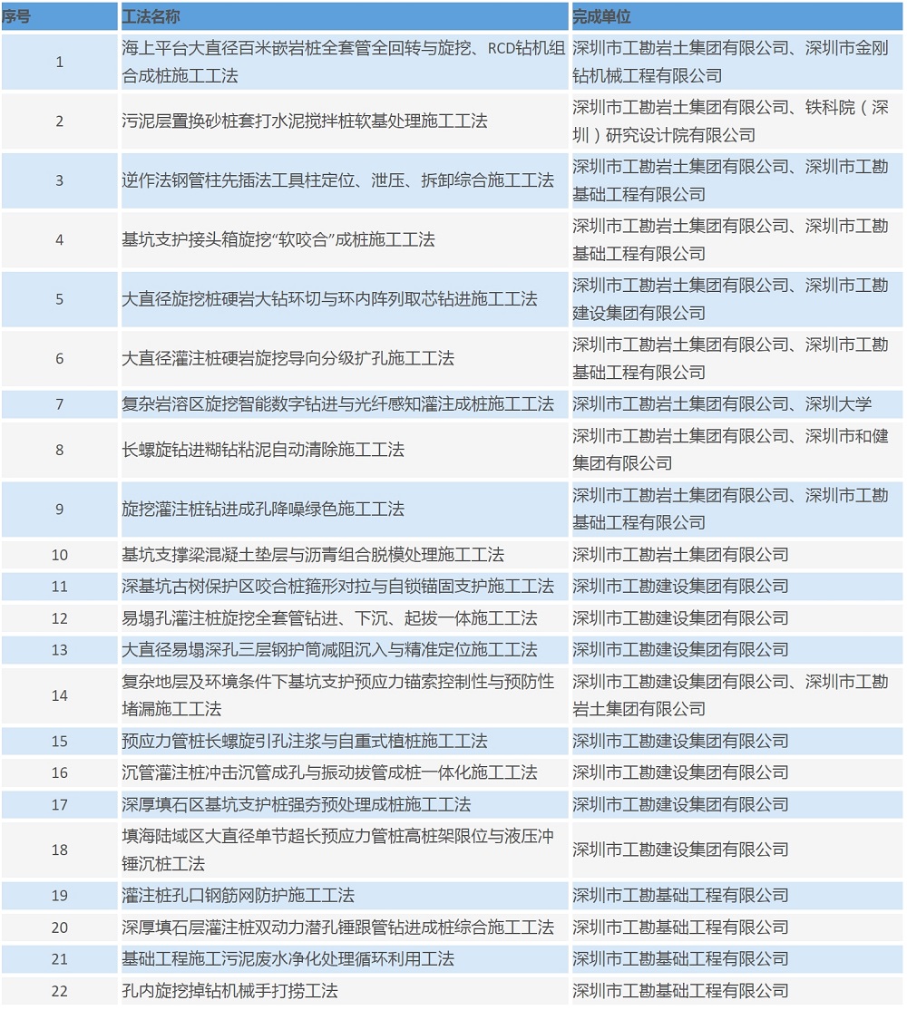 工勘集團(tuán)作為巖土工程這一傳統(tǒng)行業(yè)內(nèi)的深耕者,始終堅(jiān)守專業(yè)主義和長(zhǎng)期主義,持續(xù)以工法為抓手,聚焦工程項(xiàng)目中的關(guān)鍵技術(shù)難點(diǎn)和質(zhì)量通病,積極開(kāi)展新工藝方法研究、新技術(shù)施工應(yīng)用及專利研發(fā)申報(bào)等科技創(chuàng)新工作,努力形成具備更多推廣應(yīng)用價(jià)值高、實(shí)用性強(qiáng)的關(guān)鍵技術(shù)。目前,工勘集團(tuán)已獲評(píng)141項(xiàng)市級(jí)工法和103項(xiàng)省級(jí)工法,成為行業(yè)內(nèi)擁有最多施工工法的企業(yè),奮力躋身于廣東省巖土行業(yè)的前列,為解決實(shí)際工程技術(shù)難題、提升行業(yè)施工水平貢獻(xiàn)工勘智慧與力量。