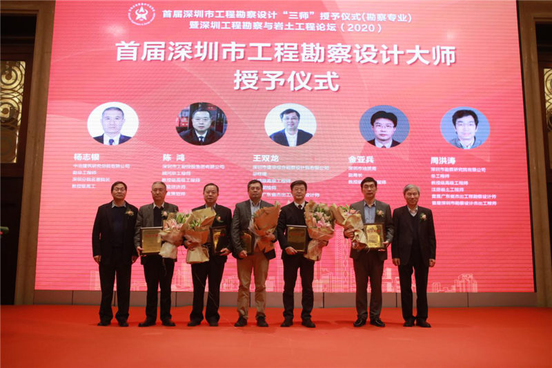 工勘集團(tuán)總工程師陳鴻(左三)獲評(píng)為“首屆深圳市工程勘察設(shè)計(jì)大師”